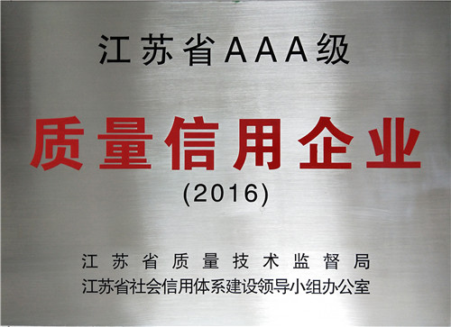 克日 ,江苏省质量手艺监视局向我公司揭晓了 “江苏省AAA质量信用企业”奖牌 ,我司成为江苏省质量信用最高品级企业。