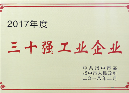 克日,扬中市政府召开2017年度突出孝顺企业颁奖大会,尊龙凯时集团荣获2017年度“三十强工业企业”称呼,名列第五位,排名比2016年提升2位。