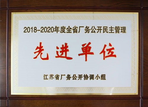 克日,尊龙凯时电气集团荣获“2018-2020年度江苏省厂务果真民主治理先进单位”称呼,这是对集团多年来厂务果真、民主治理水平和效果的充分肯定和认可。